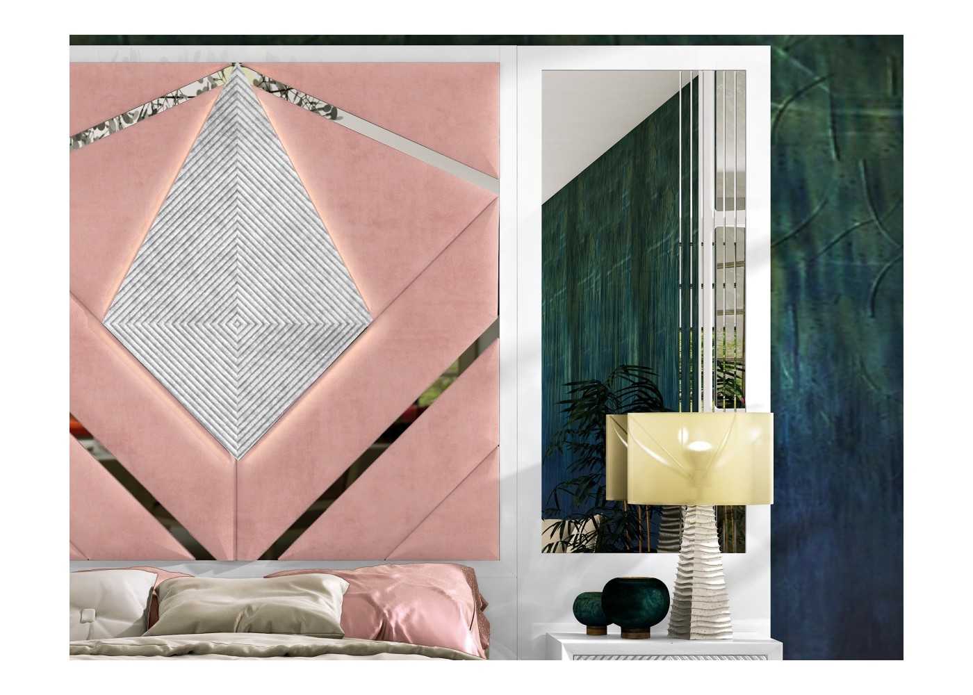 Lit complet avec tête de lit XXL tapissé et laquée au design moderne - GINETTE ROSE