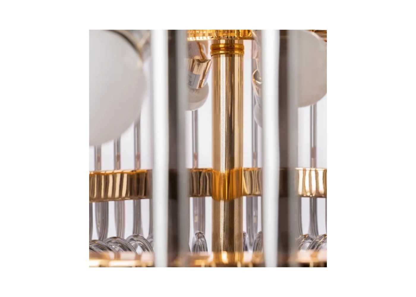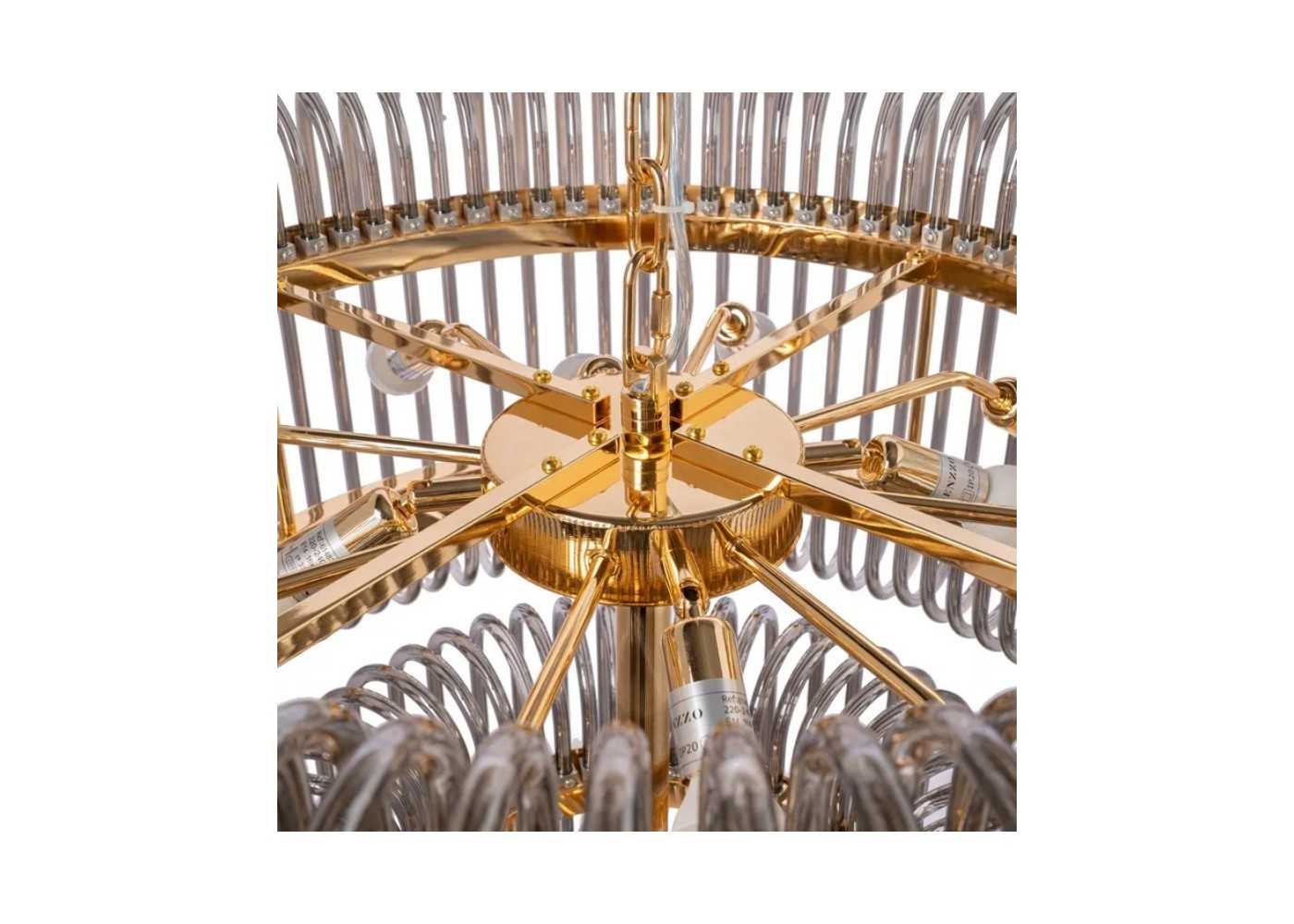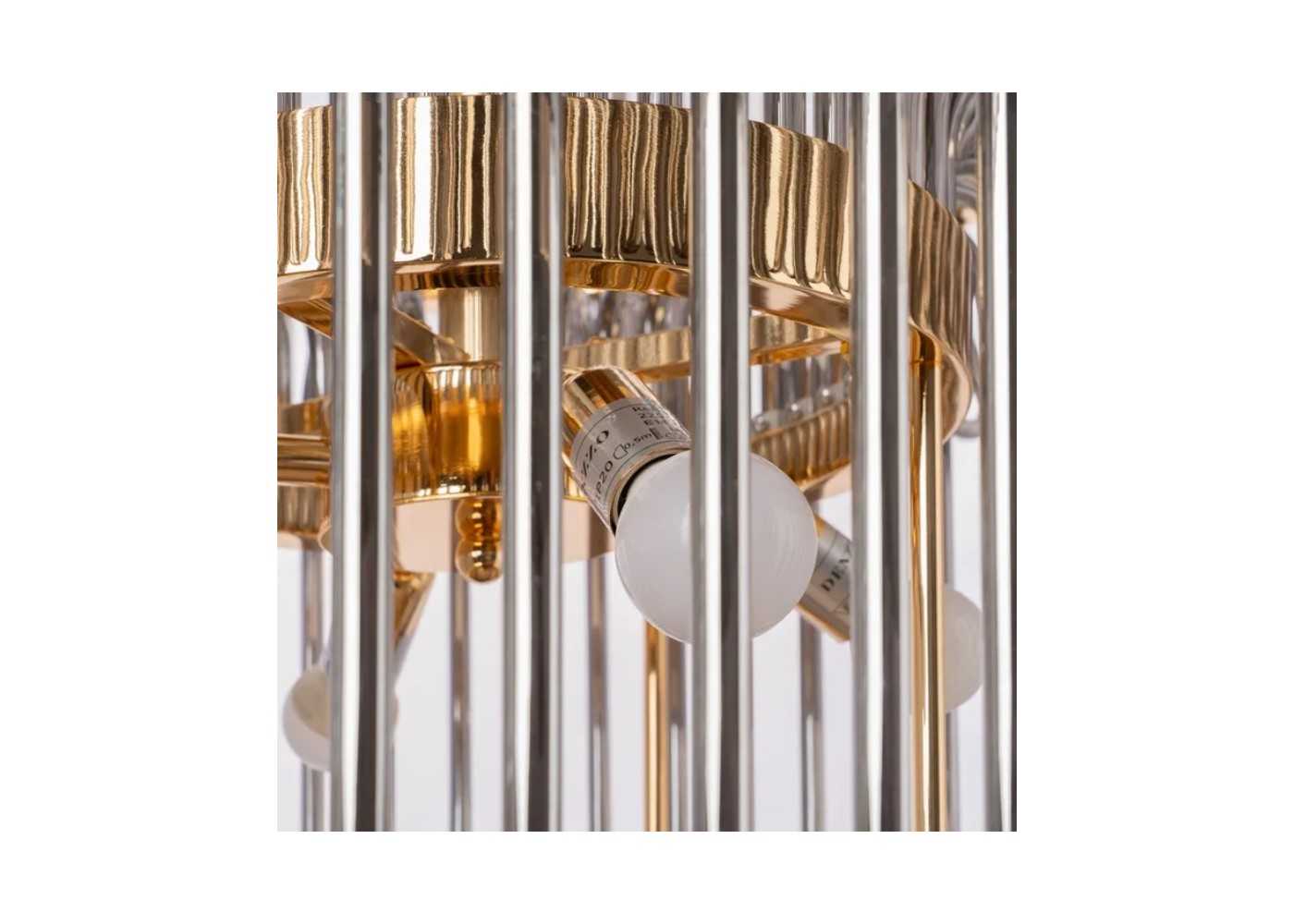 Fabriqué en acier avec une structure intérieure plaquée or et une structure extérieure en tiges d'acier courbées chromées.