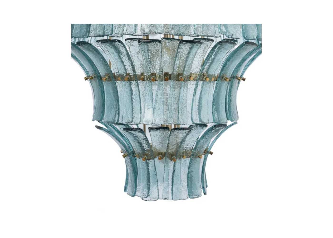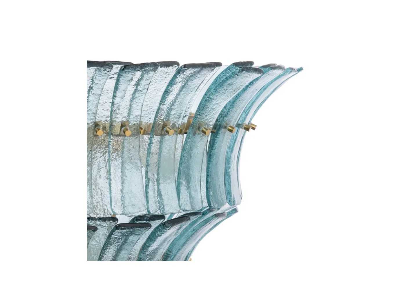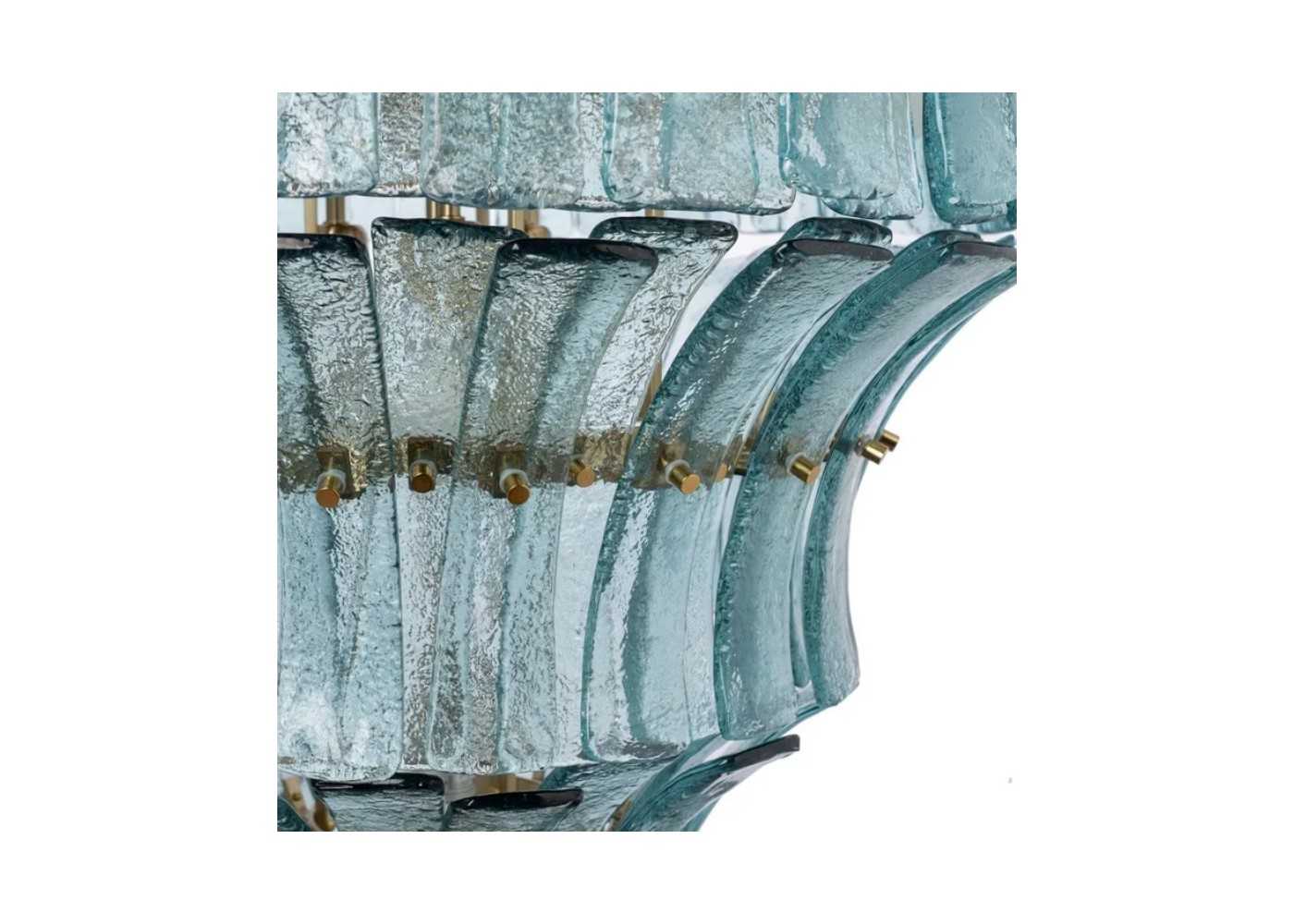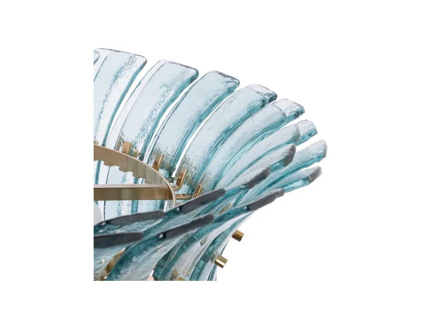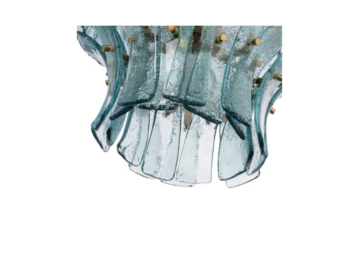 Plafonnier élégant composé de feuilles convexes de cristal bleu-vert.