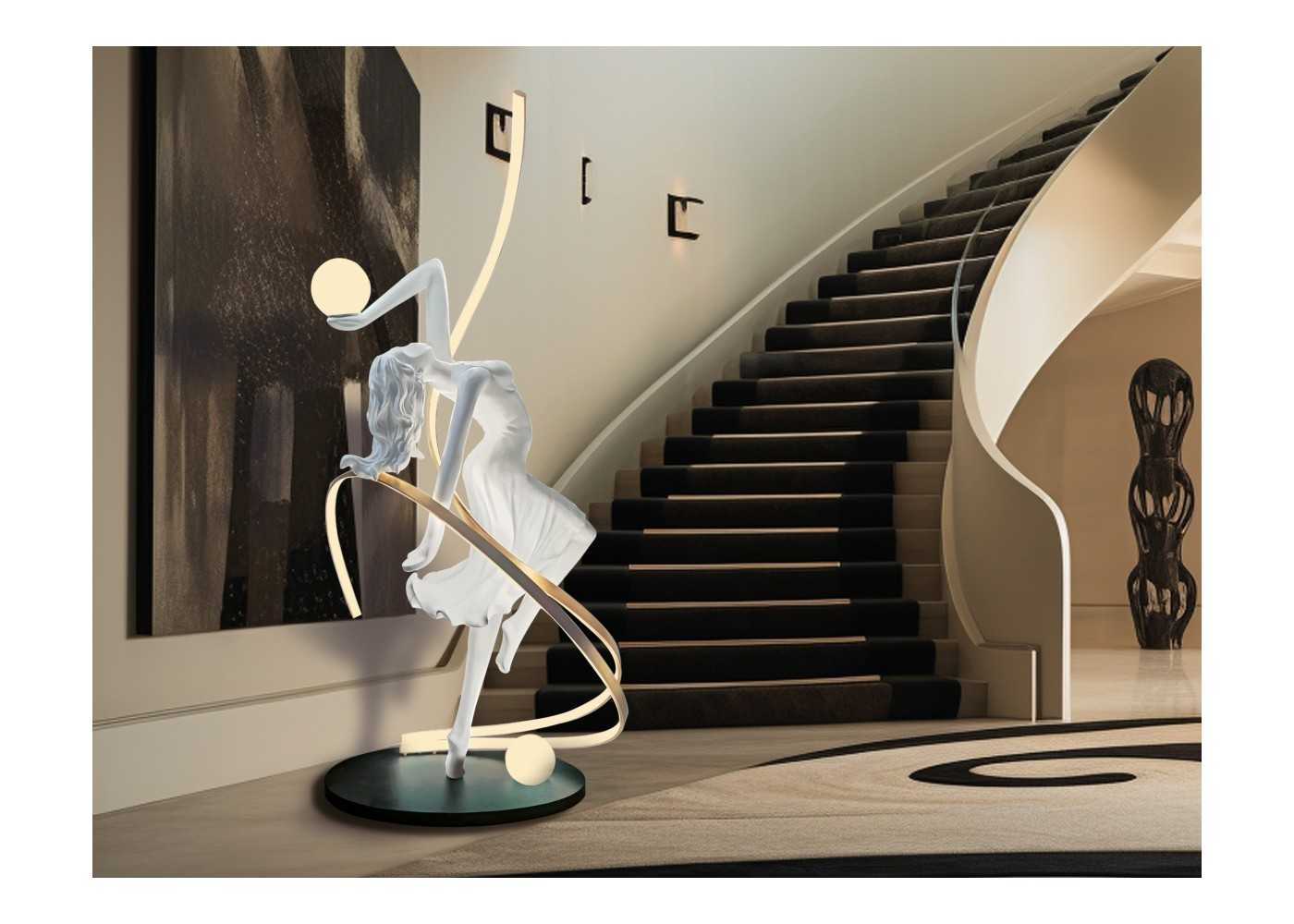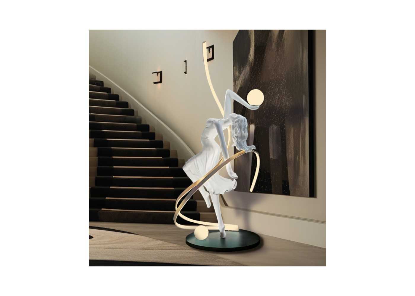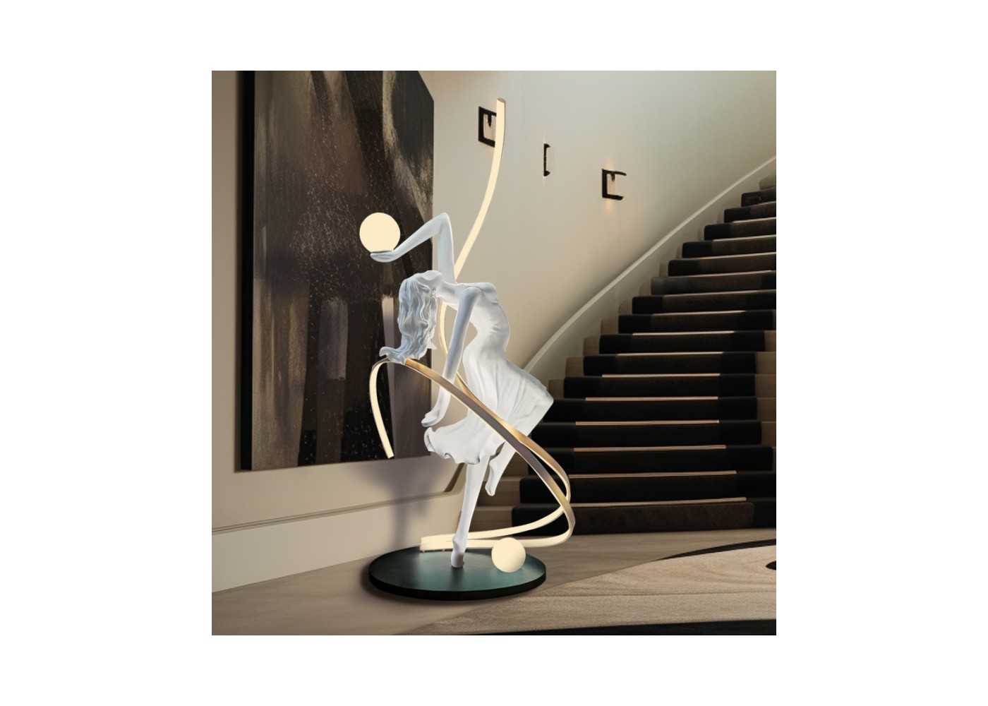 Lampe sculpture originale d'une ballerine en fibre de verre laquée blanc mat avec lumière LED.