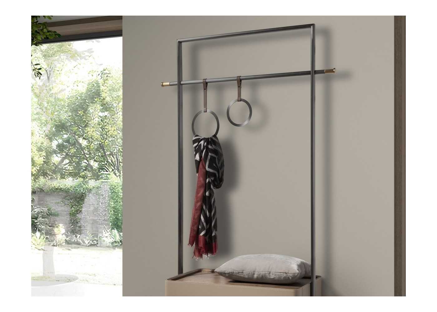Porte-manteau en acier inoxydable, bois et cuir véritable - AABET A