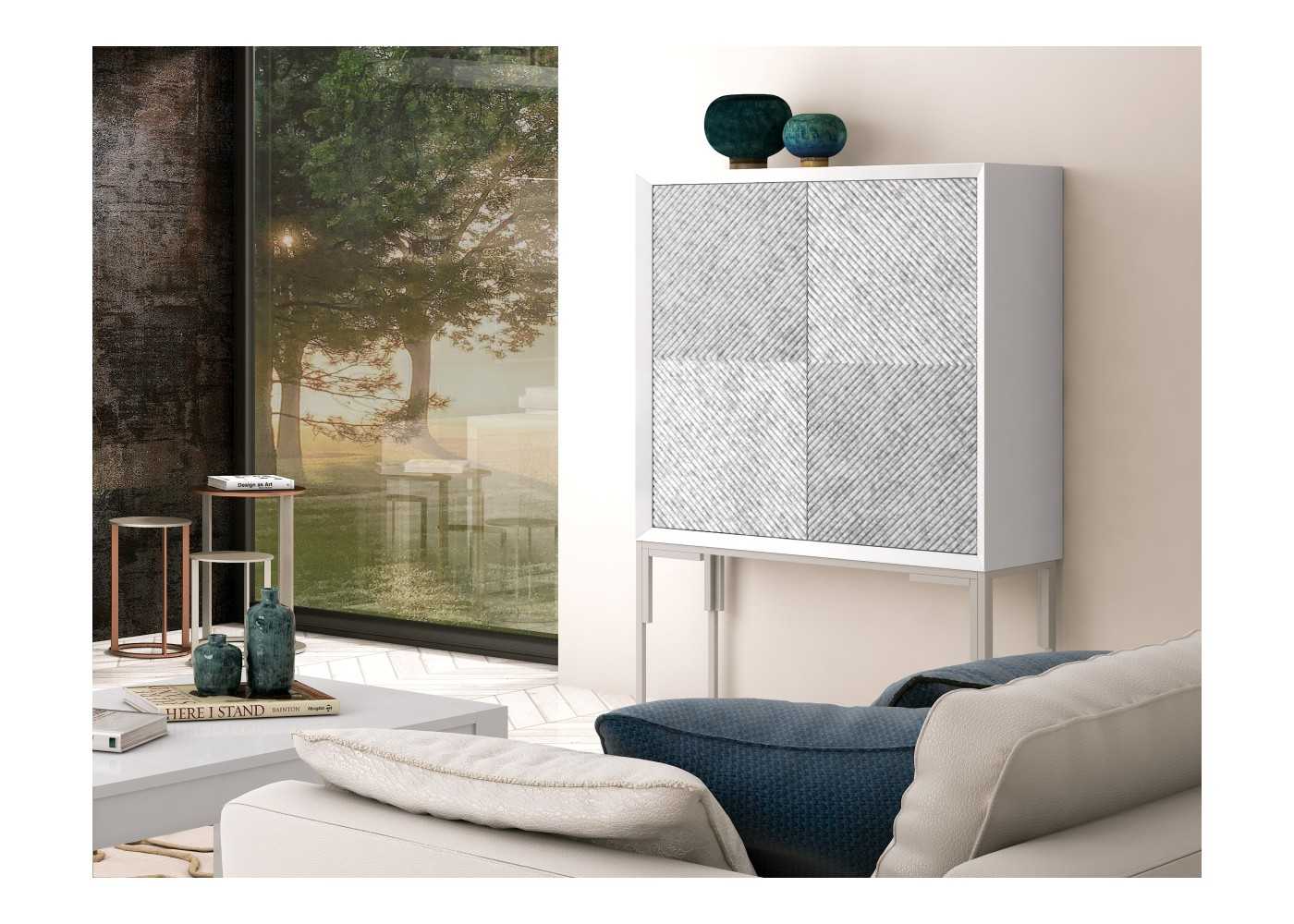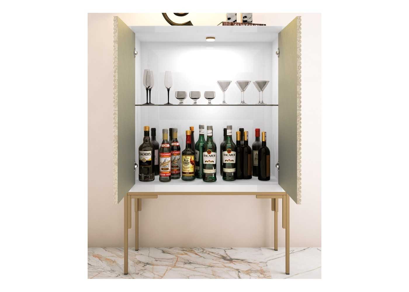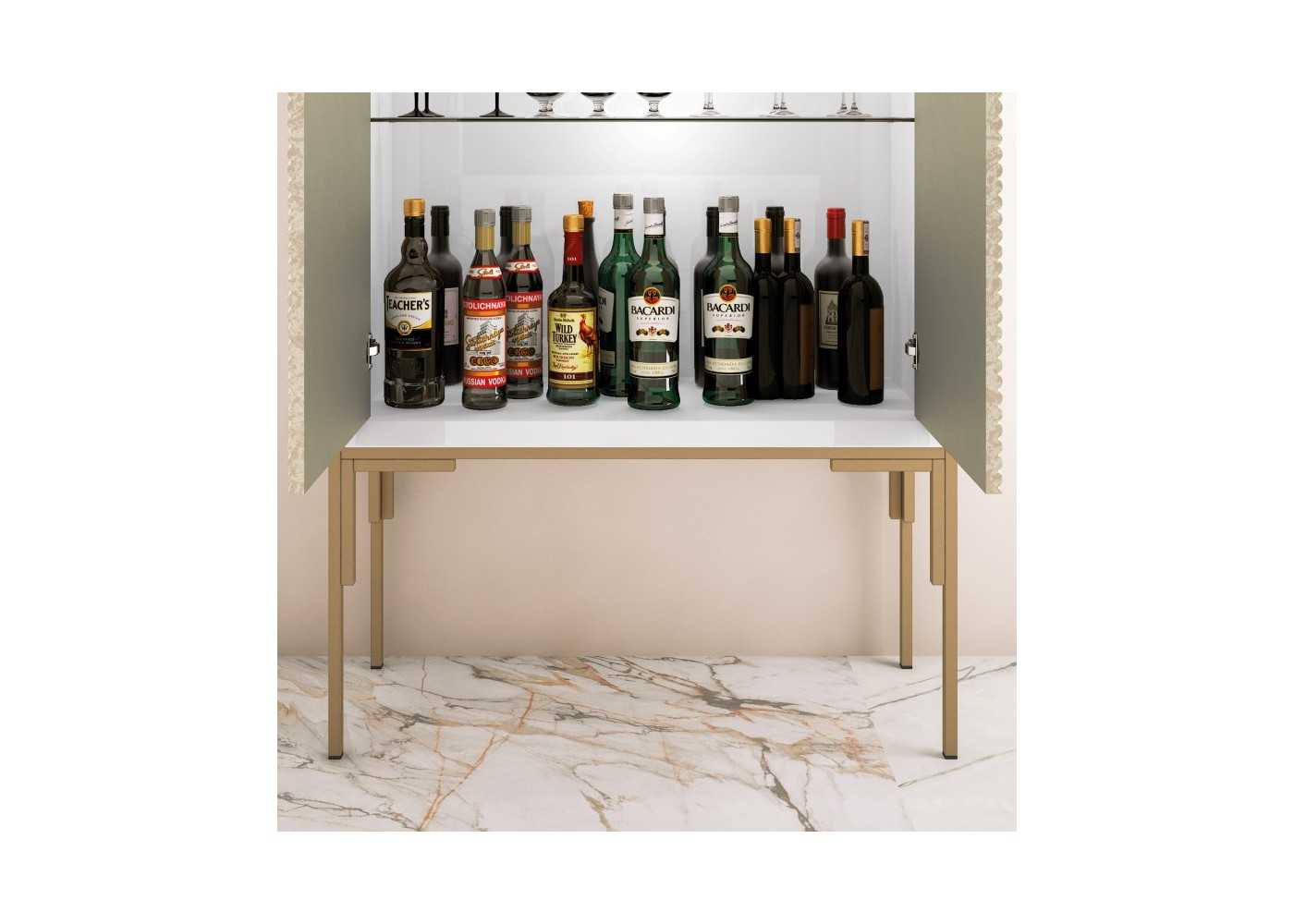 Élégant meuble bar à deux portes.