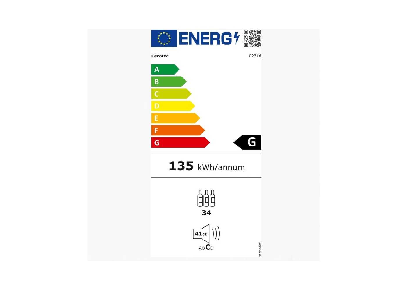Commandes tactiles, écran, LED intérieure. (CLASSE D'EFFICACITÉ ÉNERGÉTIQUE G).