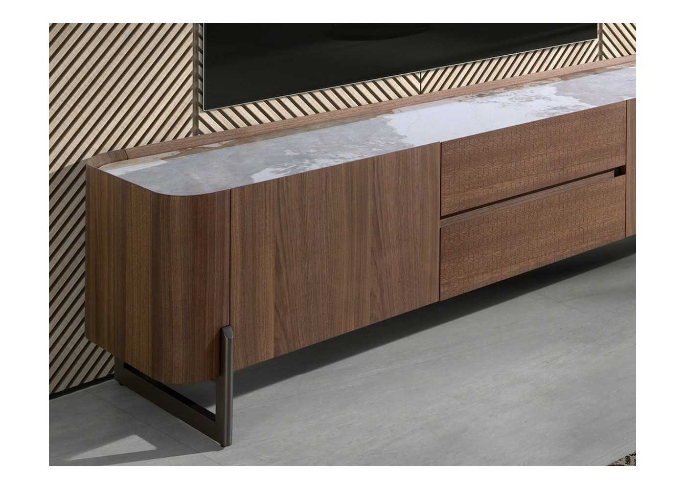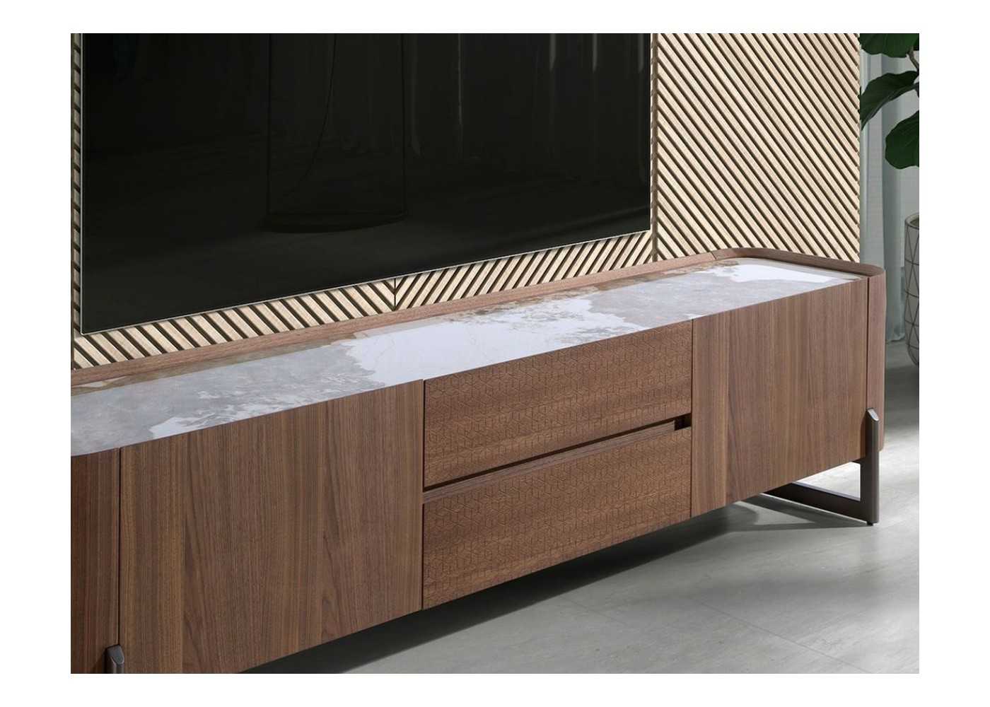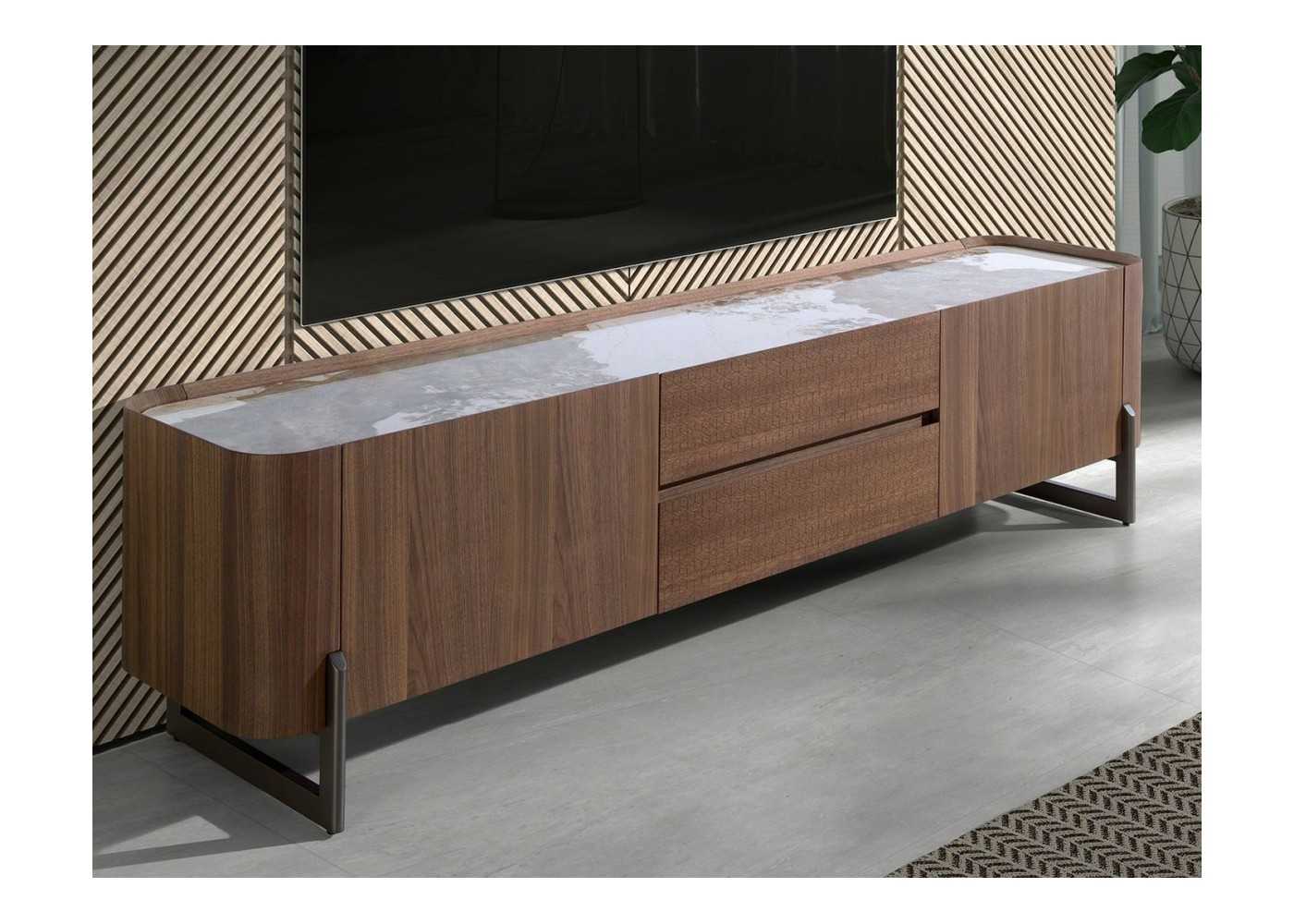 Meuble TV en noyer avec plateau en céramique - SYMI