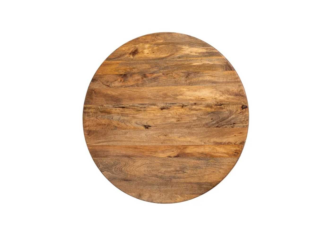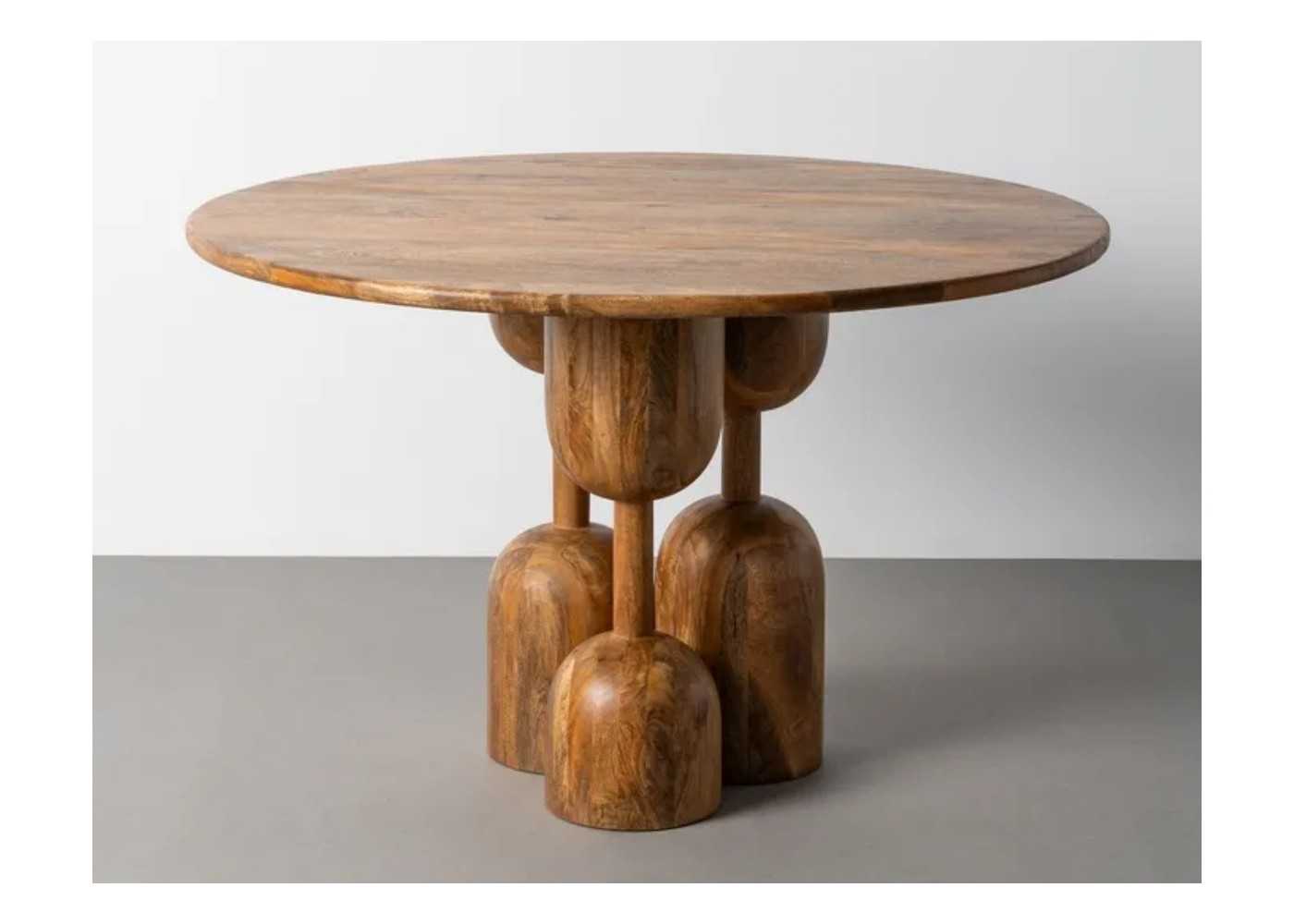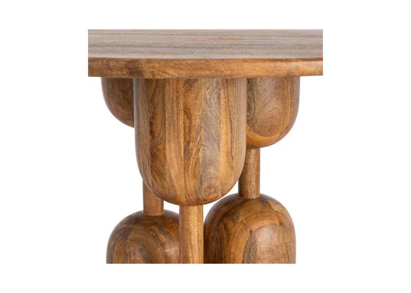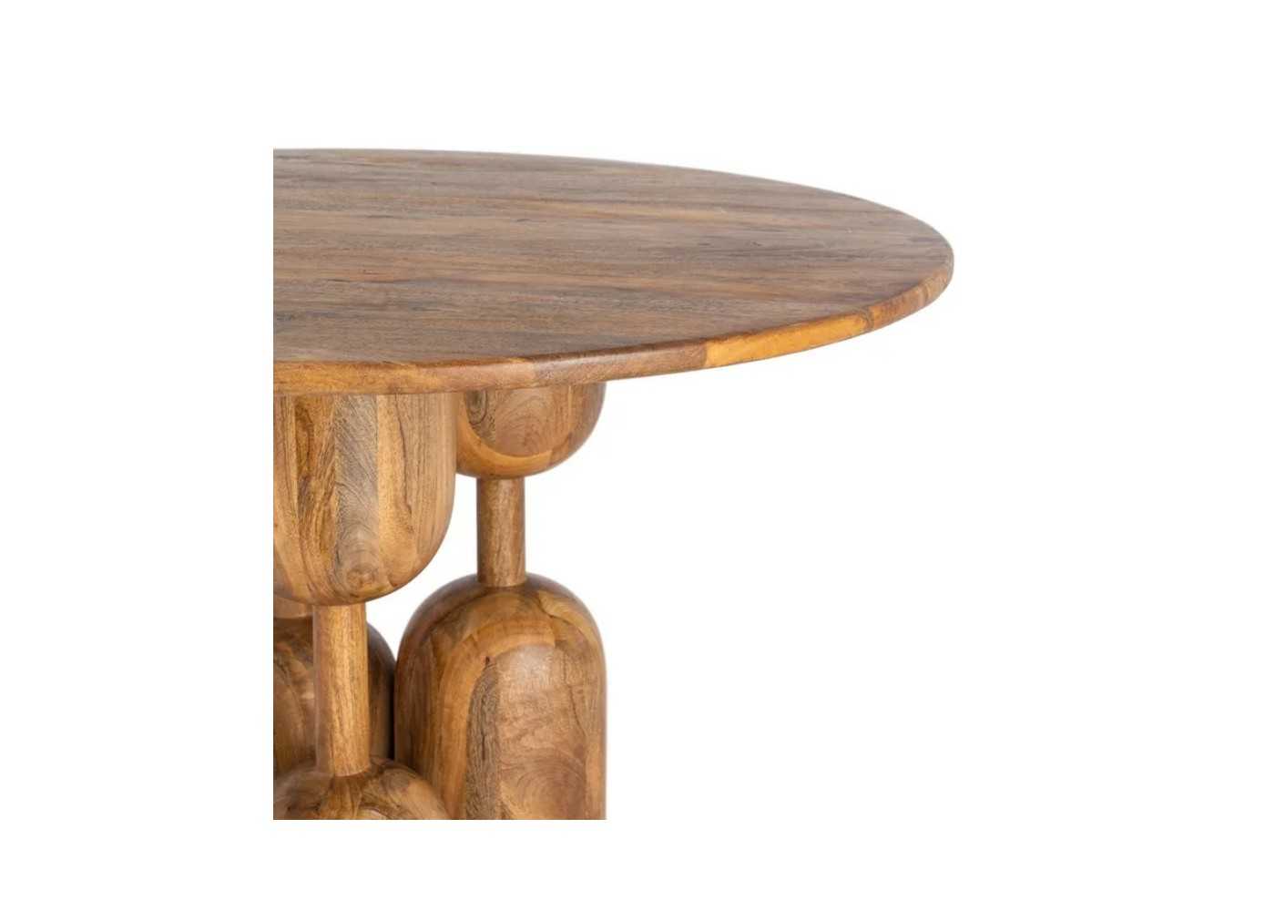 Table à manger ronde originale en bois massif de manguier, au design contemporain.