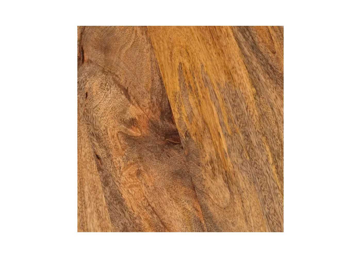 Fabriquée en bois massif de manguier avec un plateau de 3 cm d'épaisseur.