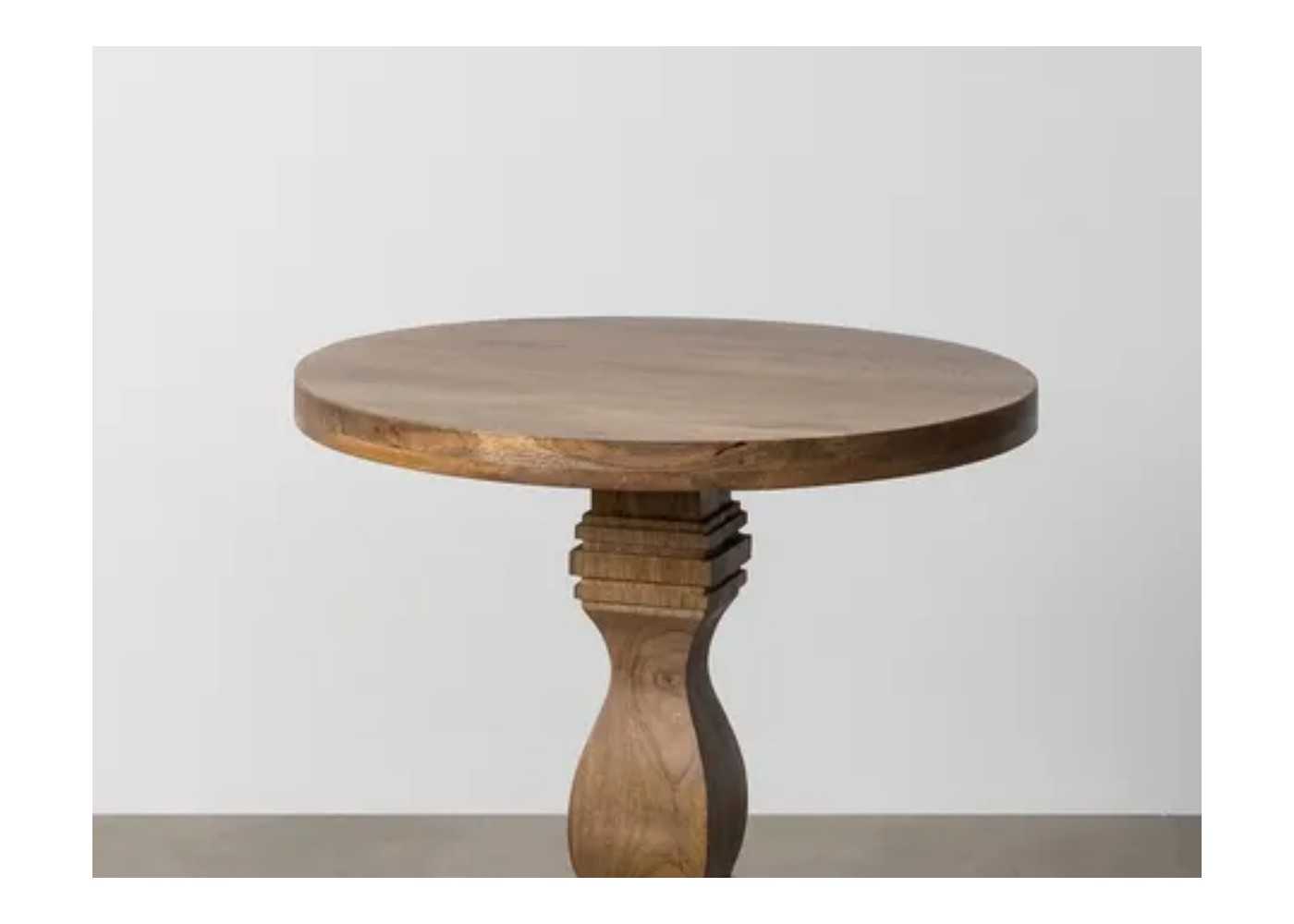 Table d'appoint élégante, fabriquée artisanalement en manguier massif couleur noyer naturel.