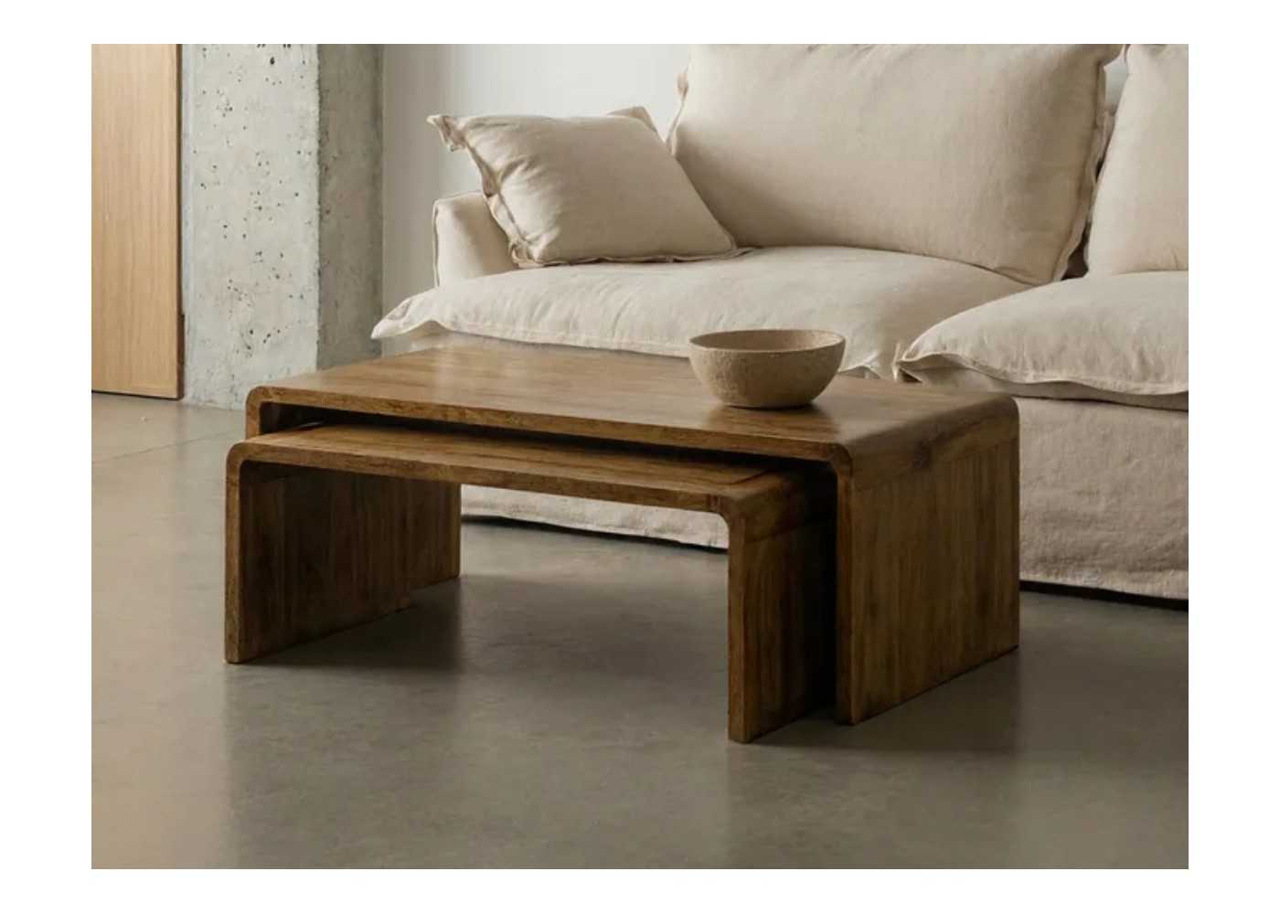 Ensemble de 2 tables basses en bois de manguier massif - AIRE