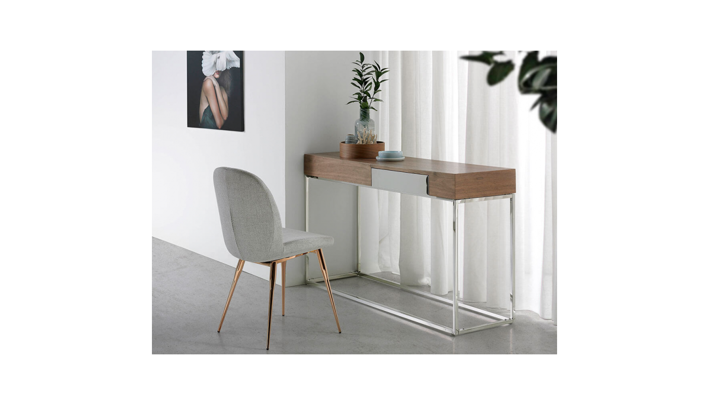 Console en noyer avec 1 tiroir et base en acier inoxydable - MOZART