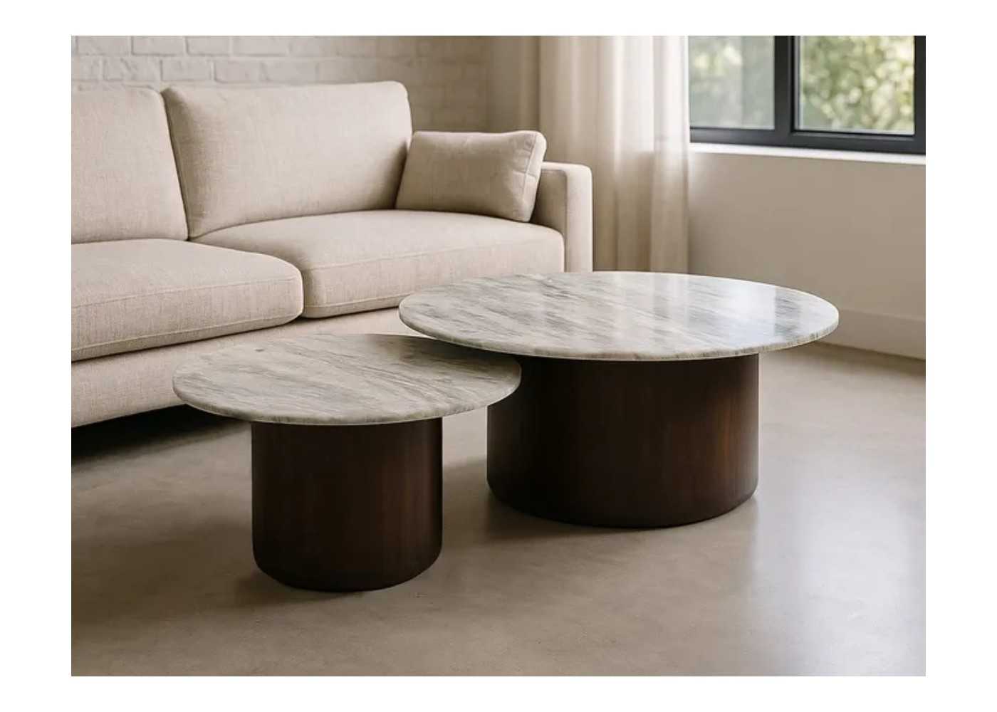 Table basse ronde avec plateau en marbre porcelaine et pieds en acier inoxydable - RIGA