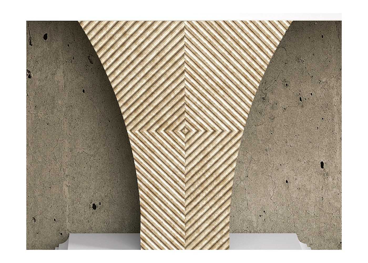 Colonne centrale ornée d'une gravure originale en losanges dans un marbre champagne (option marbre argenté sans supplément).