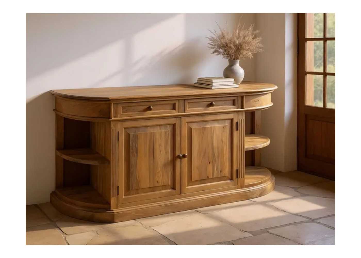Buffet rustique/méditerranéen pratique et fonctionnel en bois de manguier à la finition naturelle.