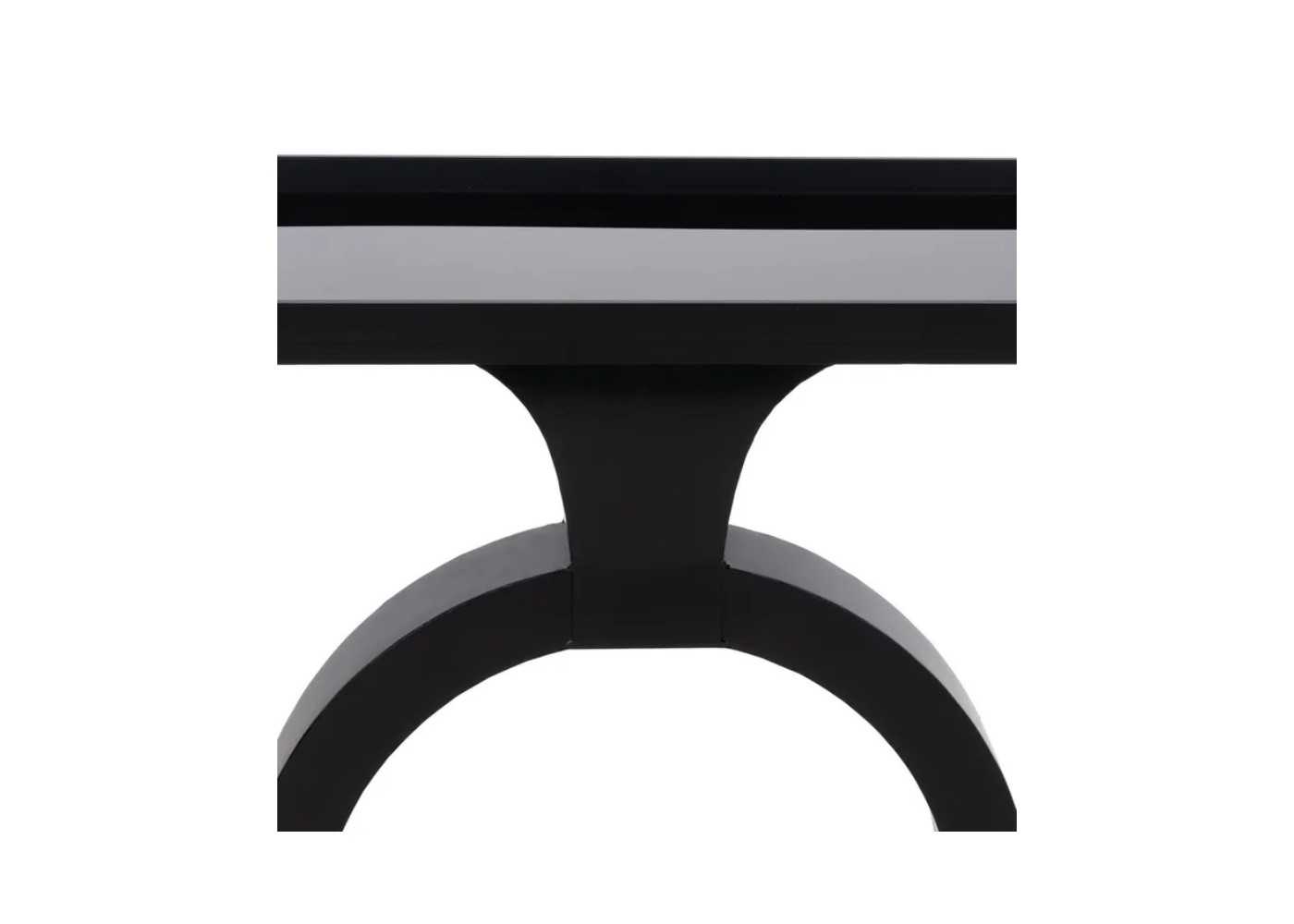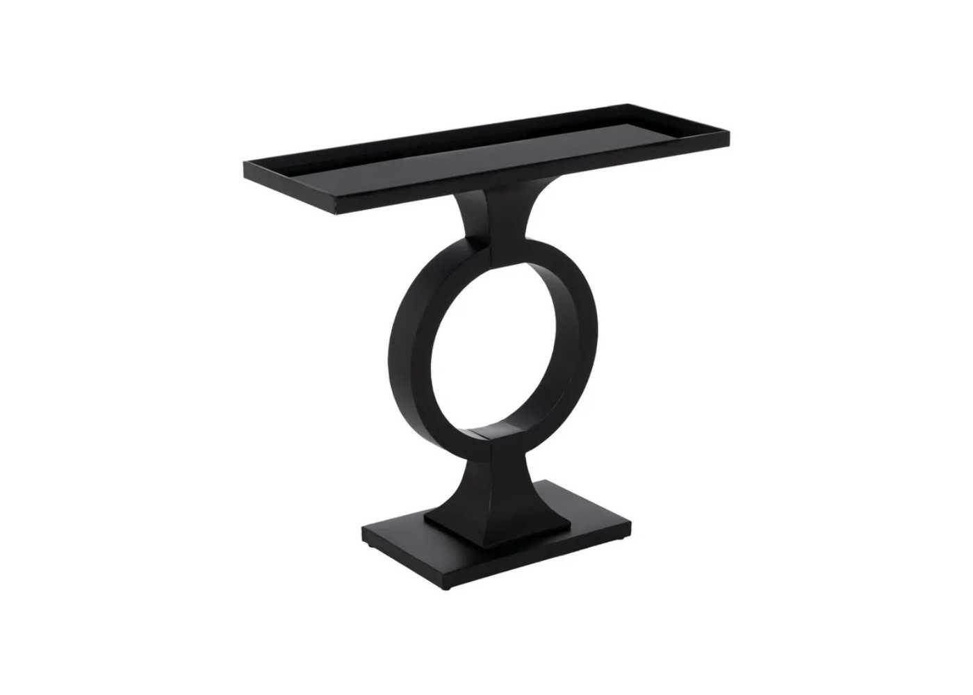 Console d'entrée en acier laqué noir mat, au design original et dotée d'un plateau en verre.
