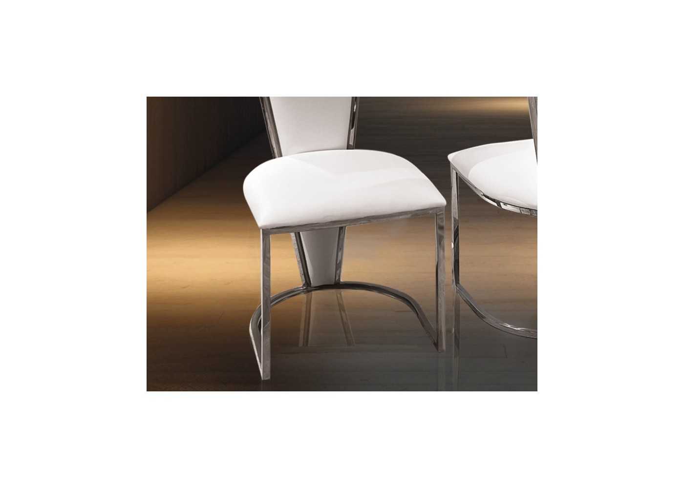 Chaise élégante et originale avec une structure en acier inoxydable chromé et un revêtement en cuir synthétique blanc.