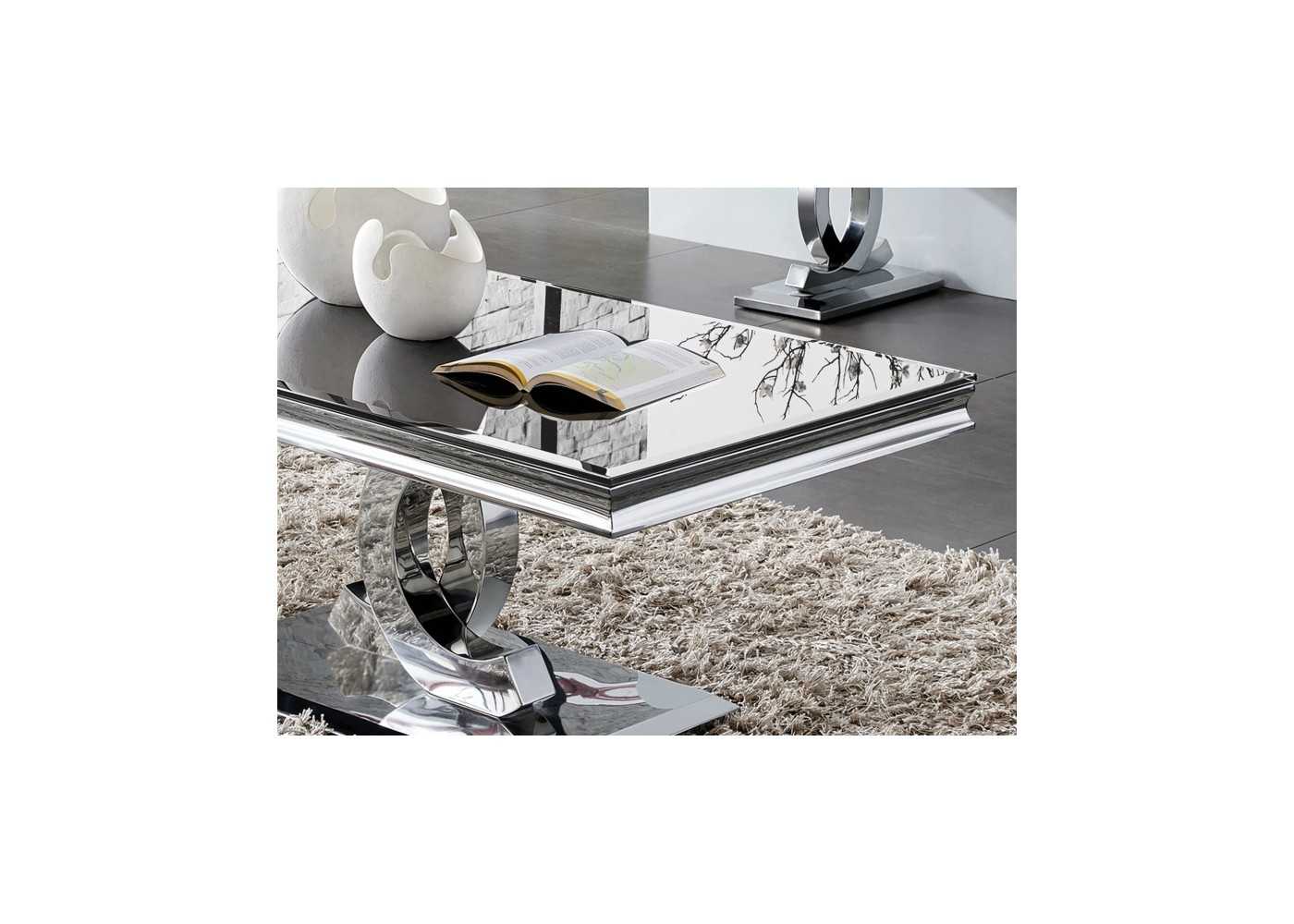 Table basse élégante et originale avec une base originale formée de deux demi-cercles entrelacés.
