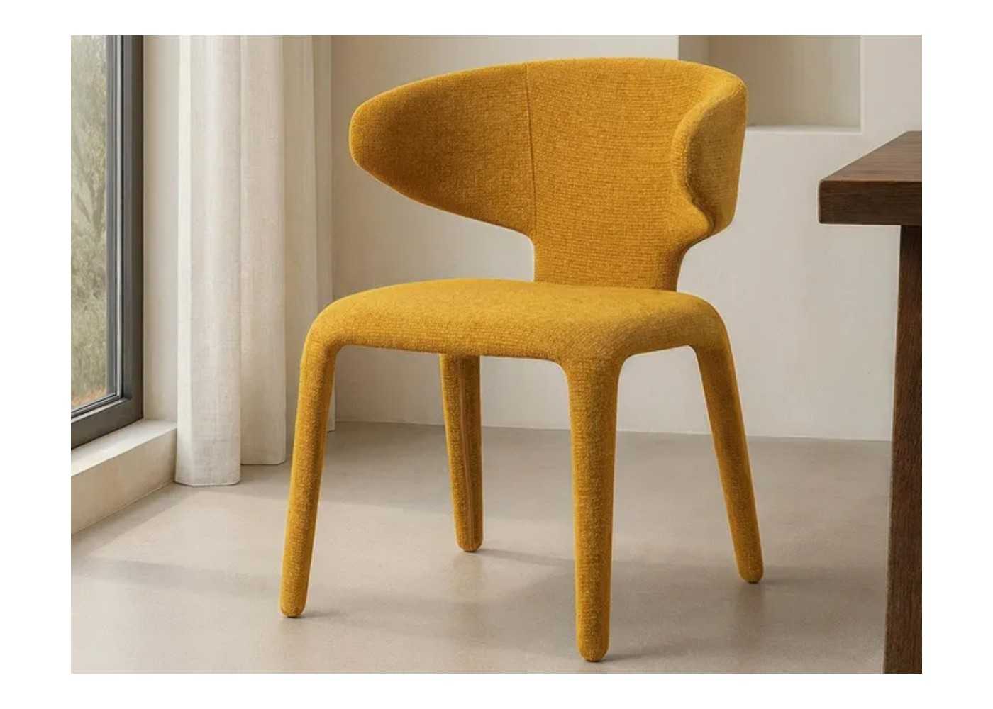 Chaise au design moderne, entièrement revêtue d'un tissu MOUTARDE chiné durable et de haute qualité (310 g/m²).