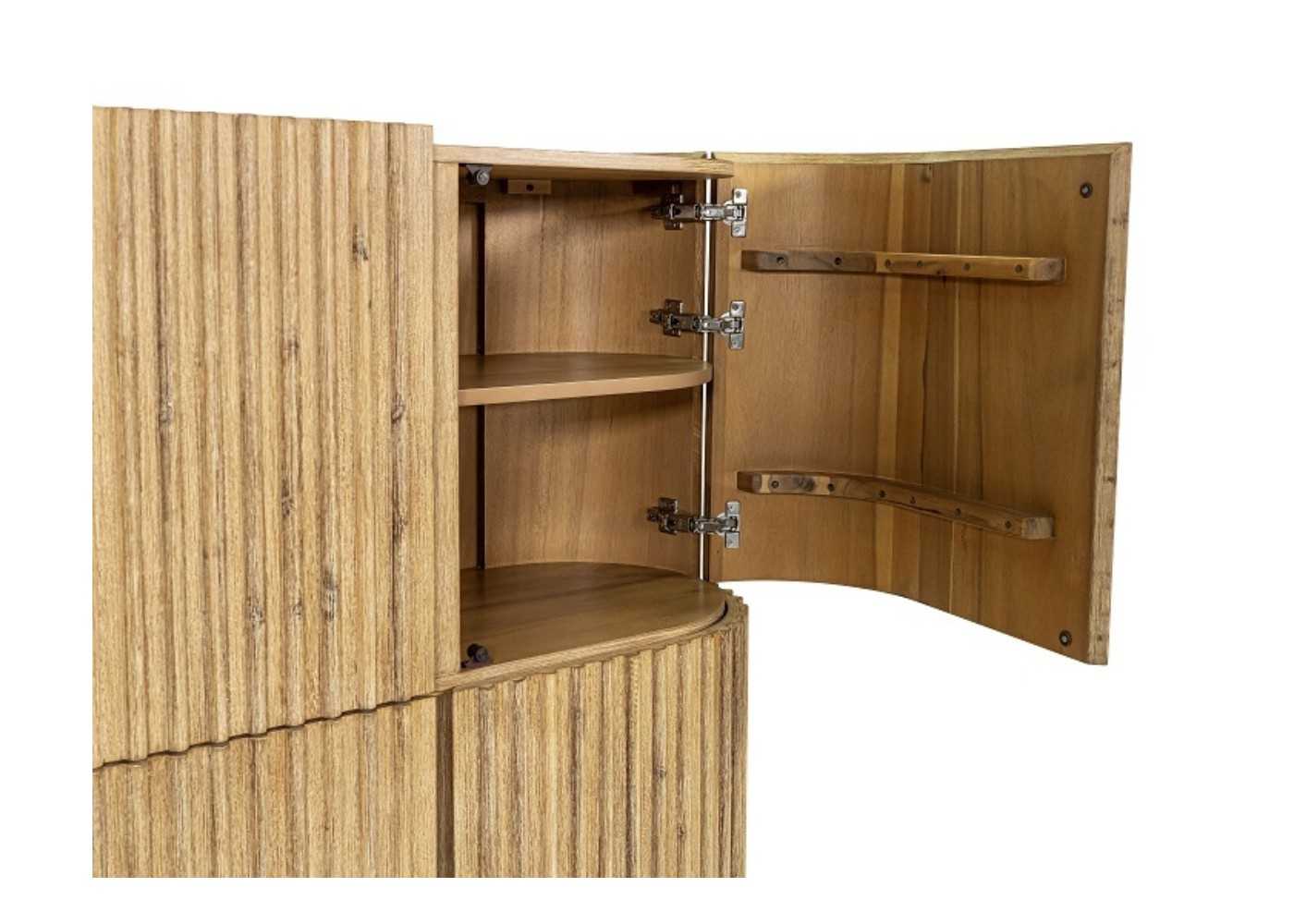 Meuble vaisselier en bois massif d'acacia avec 4 portes enveloppantes avec étagères internes, 3 étagères intérieures et 6 compartiments avec façades de portes rainurées.