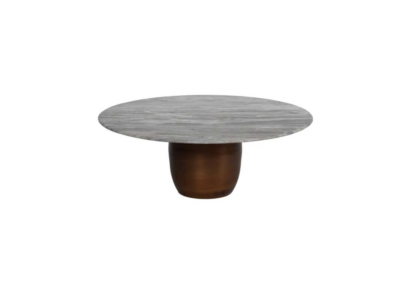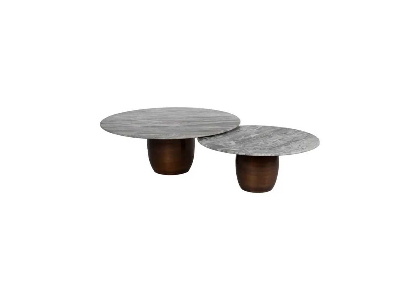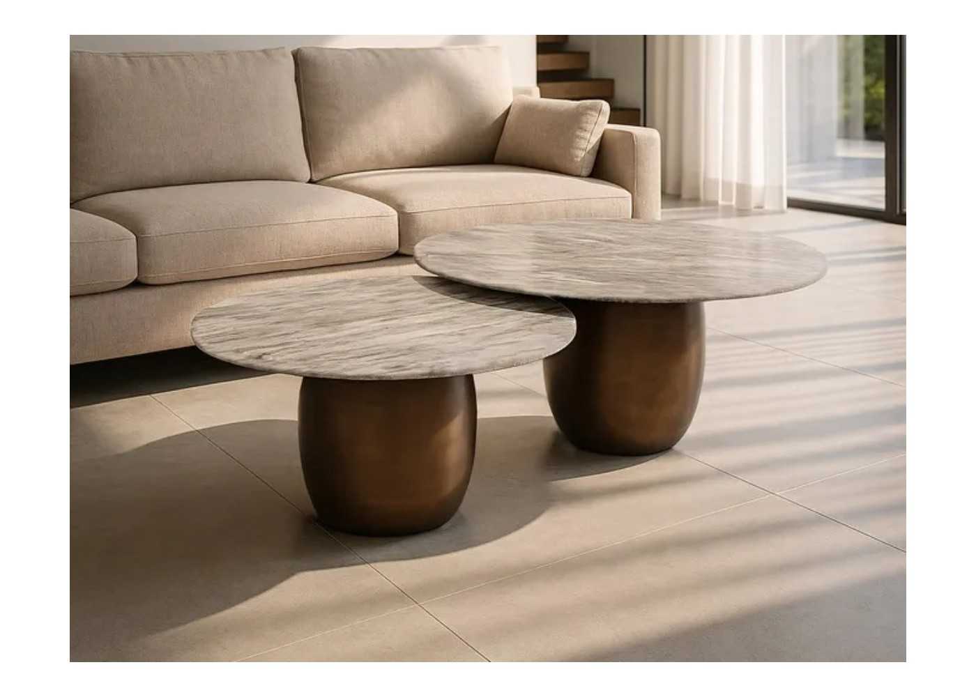 Table d'angle ronde en noyer avec plateau en marbre porcelaine - AYERIM