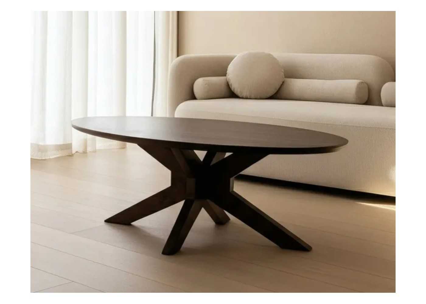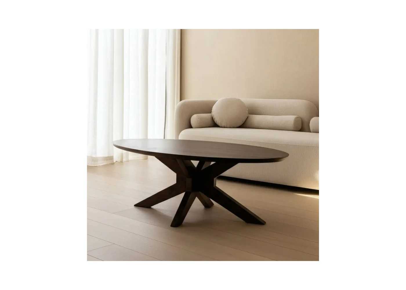 Cette belle table basse au plateau ovale saura trôner fièrement en centre de votre coin détente dans le salon.