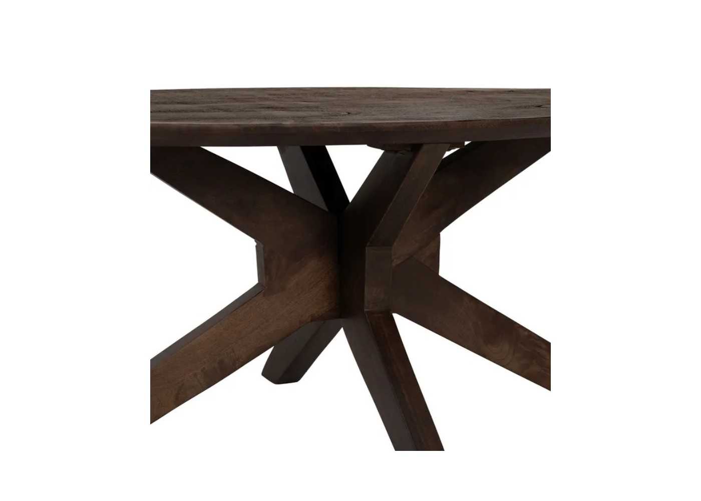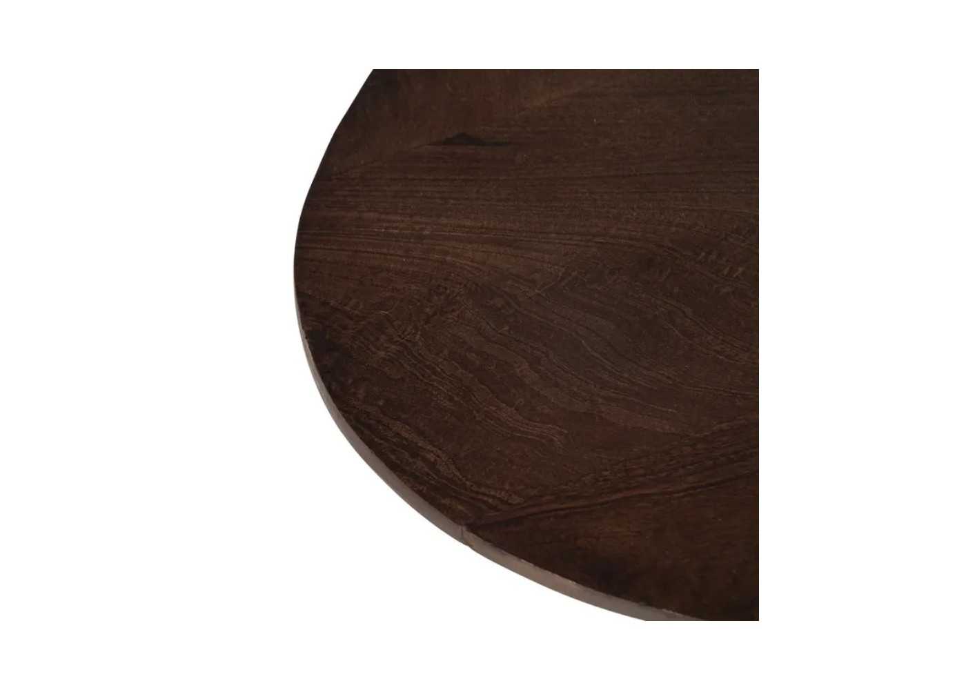 Fabriquée en bois de manguier teinté marron foncé, son magnifique piètement central vient supporter son grand plateau épais et ainsi vous assurer sa stabilité.