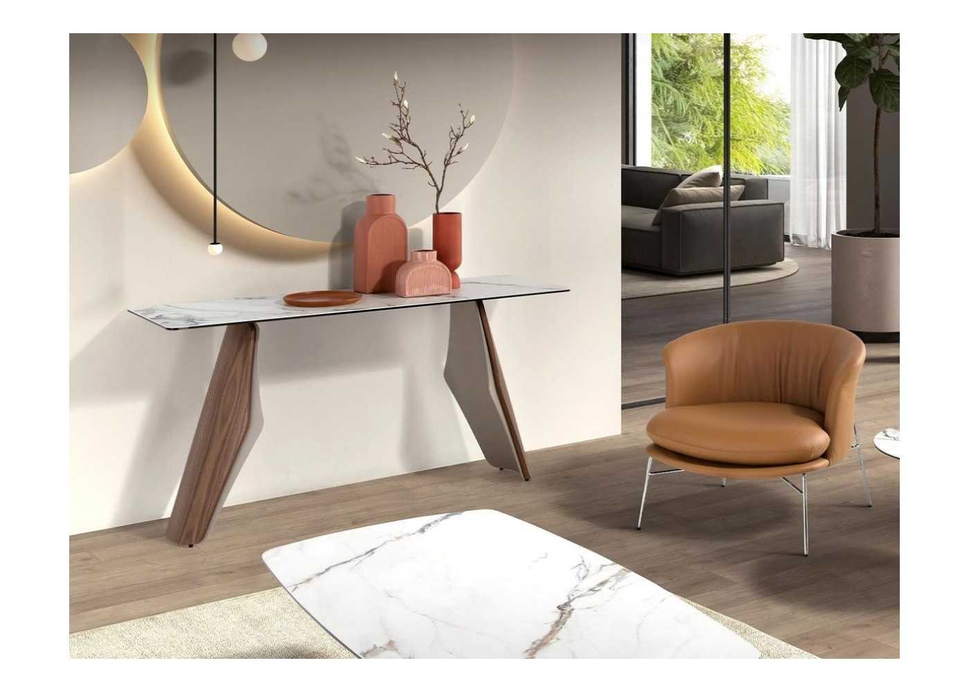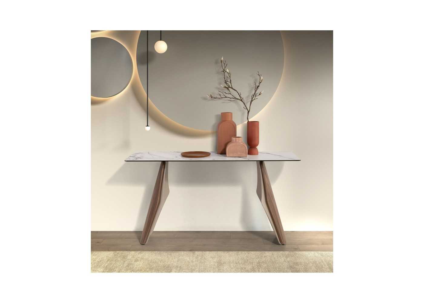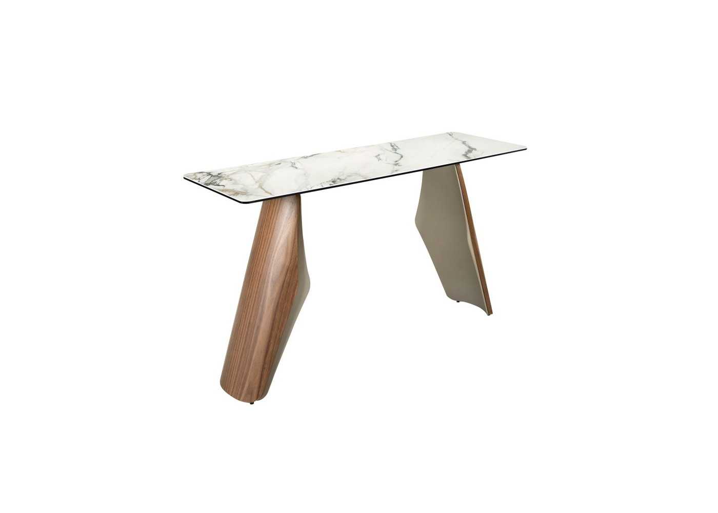 Console au design moderne avec bois, acier inoxydable et plateau en marbre de porcelaine - AALS