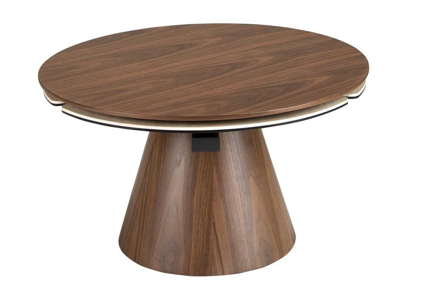 Design moderne avec un plateau conique et un piètement en frêne plaqué noyer naturel. Le placage naturel de haute qualité a une épaisseur de 0,5 mm.