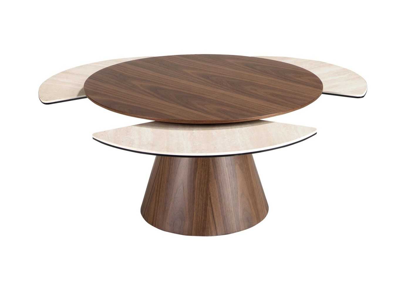 Table basse ronde extensible en bois avec plateau en marbre porcelaine - ABELLO