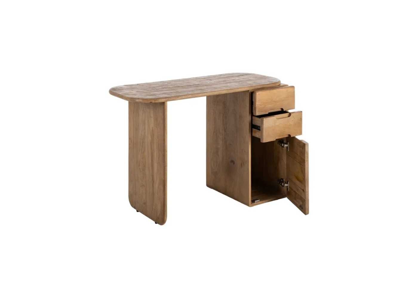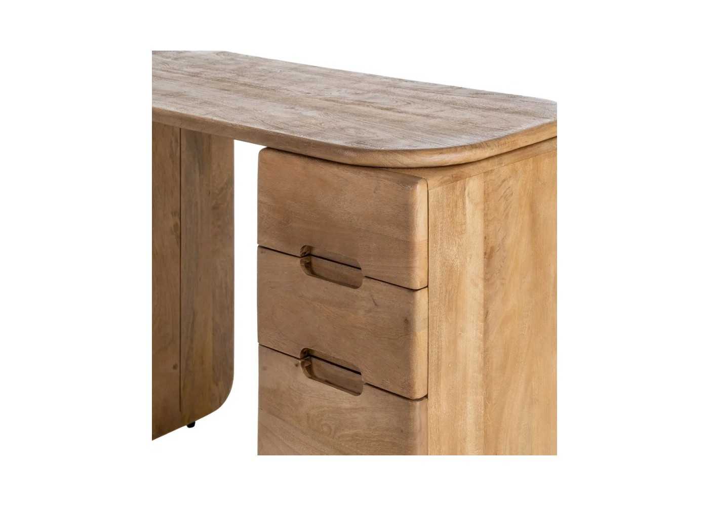 Bureau original et pratique aux lignes rétro et arrondies, fabriqué en bois de manguier massif de couleur naturelle.